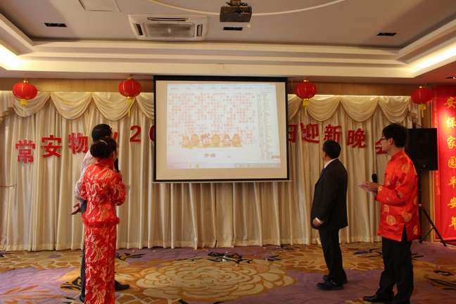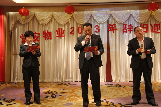 2013年1月25日常安物業(yè)召開了2012年度表彰總結(jié)大會(huì)及2013年辭舊迎新晚會(huì)。參加會(huì)議的主要人員有副總經(jīng)理-黃國義、副總經(jīng)理-蔡愛花、董事長-張武。會(huì)議主要對(duì)公司在2012年度的各項(xiàng)工作進(jìn)行了匯報(bào)與總結(jié),并制定了2013年的發(fā)展戰(zhàn)略。會(huì)議中對(duì)2012年度優(yōu)秀員工及先進(jìn)服務(wù)中心及主任進(jìn)行了表彰,并與各服務(wù)中心簽訂了2013年目標(biāo)管理責(zé)任書。