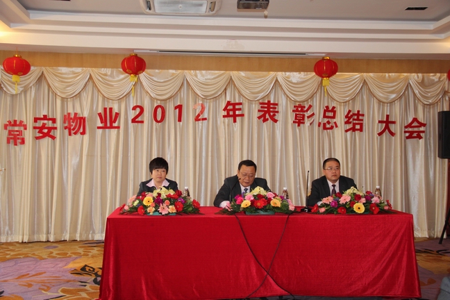2013年1月25日常安物業(yè)召開了2012年度表彰總結(jié)大會(huì)及2013年辭舊迎新晚會(huì)。參加會(huì)議的主要人員有副總經(jīng)理-黃國義、副總經(jīng)理-蔡愛花、董事長-張武。會(huì)議主要對(duì)公司在2012年度的各項(xiàng)工作進(jìn)行了匯報(bào)與總結(jié),并制定了2013年的發(fā)展戰(zhàn)略。會(huì)議中對(duì)2012年度優(yōu)秀員工及先進(jìn)服務(wù)中心及主任進(jìn)行了表彰,并與各服務(wù)中心簽訂了2013年目標(biāo)管理責(zé)任書。
