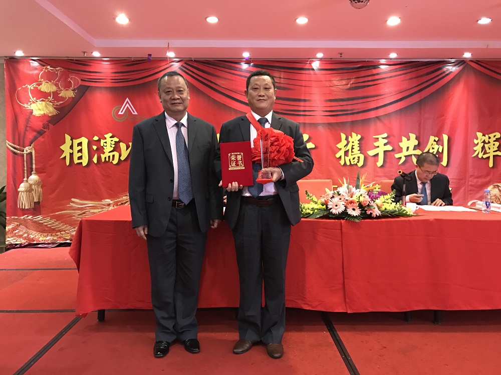 3、張總代表公司領導班子給20年老員工(何國兵總經(jīng)理助理和羅韶坤主任)頒發(fā)“二十年長期服務獎”金牌,表彰老員工20年以來對公司的付出,鼓勵公司所有員工再接再厲。