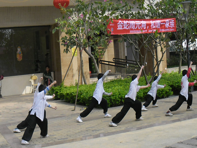 活動(dòng)開始前,紅紅火火的腰鼓表演和少兒武術(shù)表演引來不少居民下樓觀看。為了增添節(jié)日氣氛,此次活動(dòng)還特別邀請(qǐng)到留仙居腰鼓隊(duì)和春秋武藝培訓(xùn)中心前來為麗雅苑小區(qū)的居民們作開場(chǎng)表演,效果十分顯著。