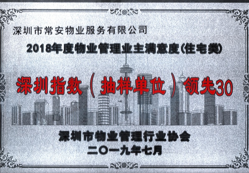 物業(yè)管理業(yè)主滿意度深圳指數(shù)測(cè)評(píng)工作已結(jié)束。以此次深圳指數(shù)測(cè)評(píng)所有樣本為主,結(jié)合深圳綜合實(shí)力 50強(qiáng)滿意度測(cè)評(píng)、優(yōu)秀項(xiàng)目達(dá)標(biāo)驗(yàn)收滿意度測(cè)評(píng)及自主參與滿意度測(cè)評(píng)所涉及的樣本進(jìn)行統(tǒng)計(jì),根據(jù)測(cè)評(píng)結(jié)果,我司榮獲“2018年度物業(yè)管理業(yè)主滿意度(住宅類(lèi))深圳指數(shù)(抽樣單位)領(lǐng)先30”的榮譽(yù)稱號(hào)。